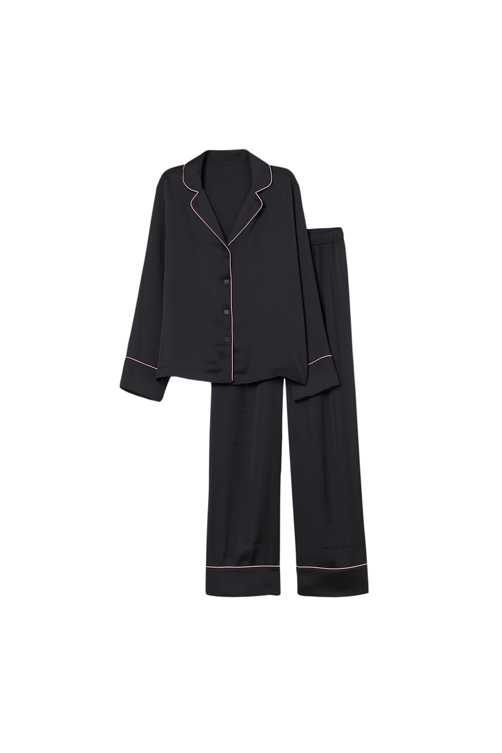 PIJAMA LONGO SEDINHA PRETO E ROSA
